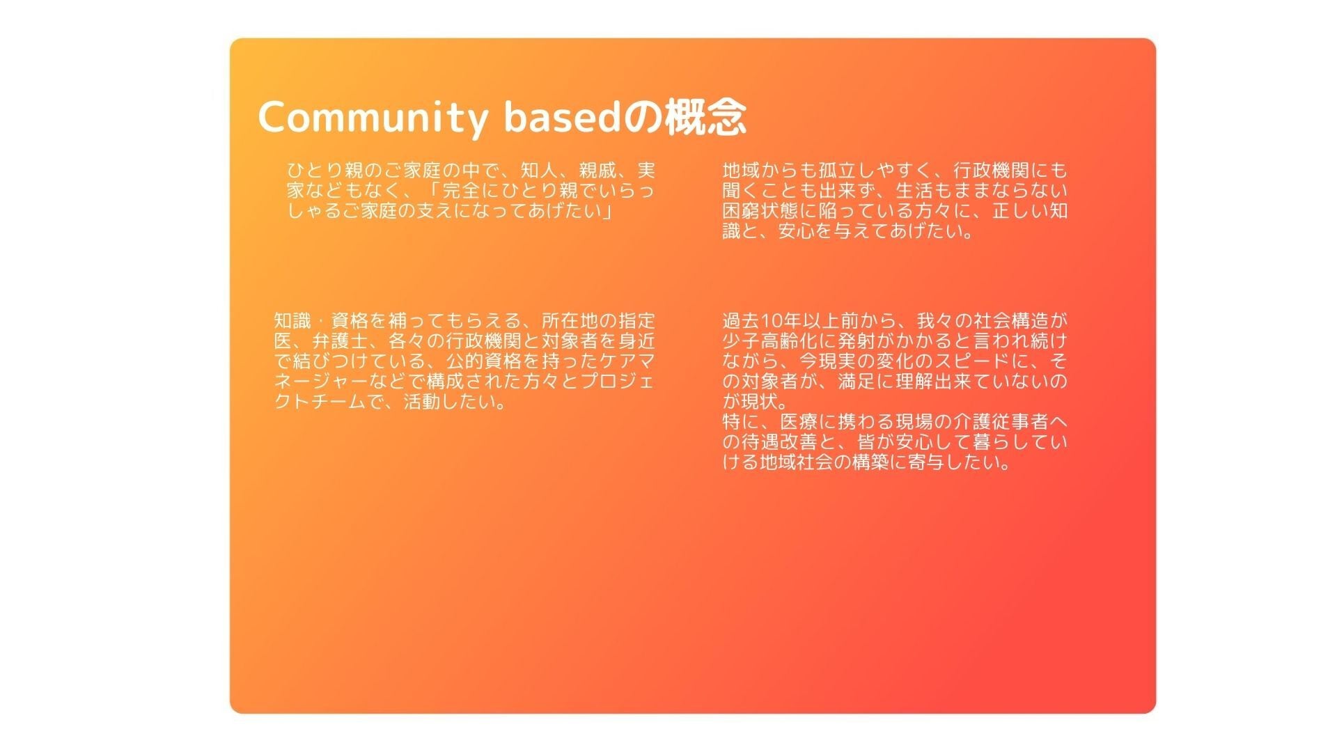 Community based 【地域特化型コミニュティー】気持ちに寄り添う